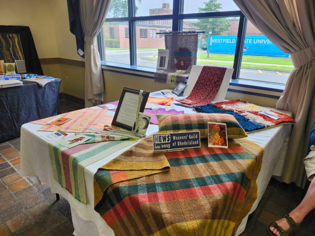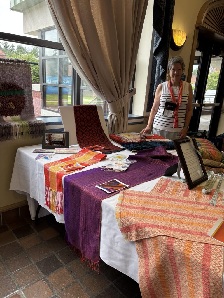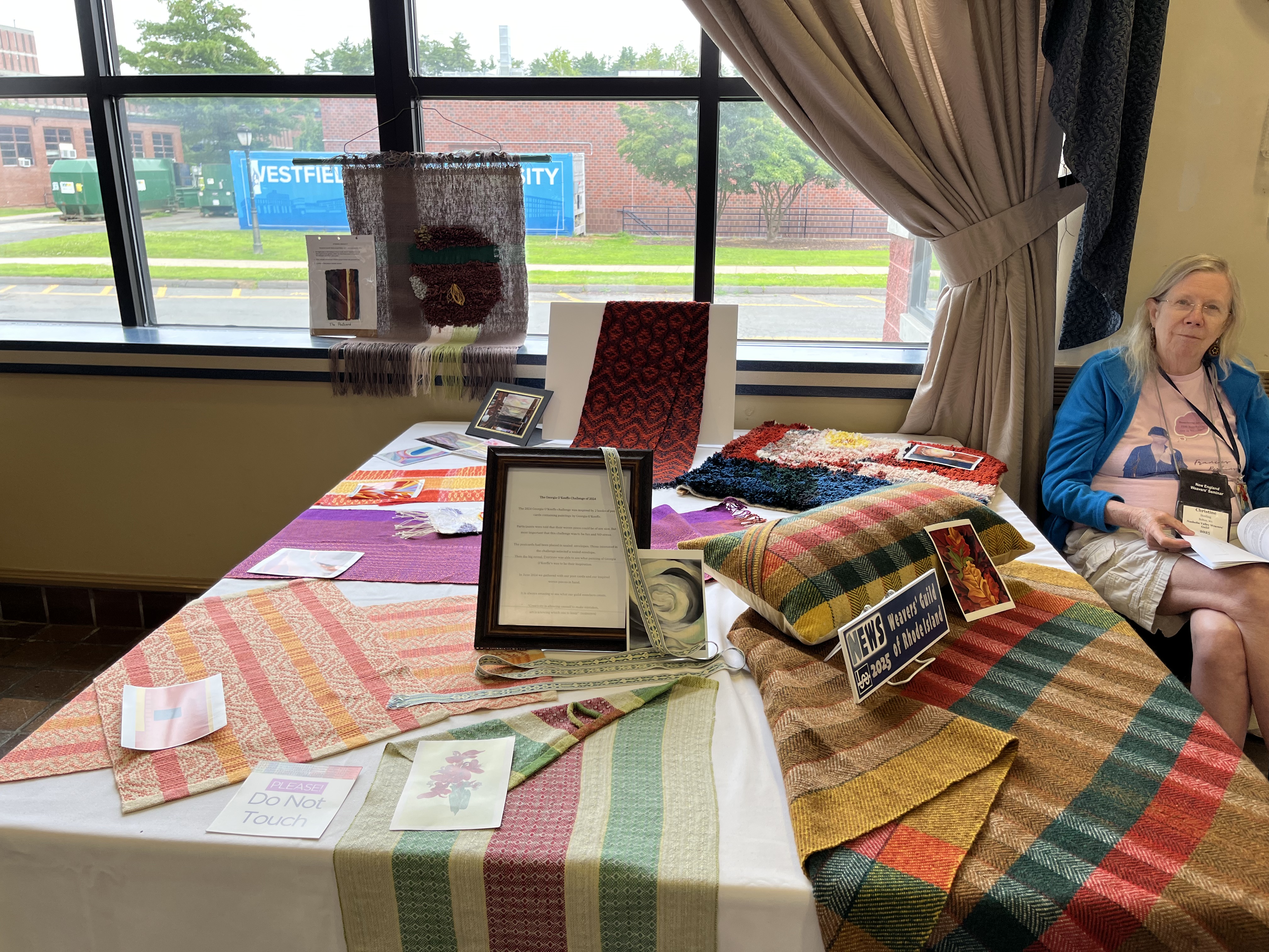 Here are some photos of our members, their entries and our Guild table from the New England Weavers Seminar held July 2025 at Westfield State University!