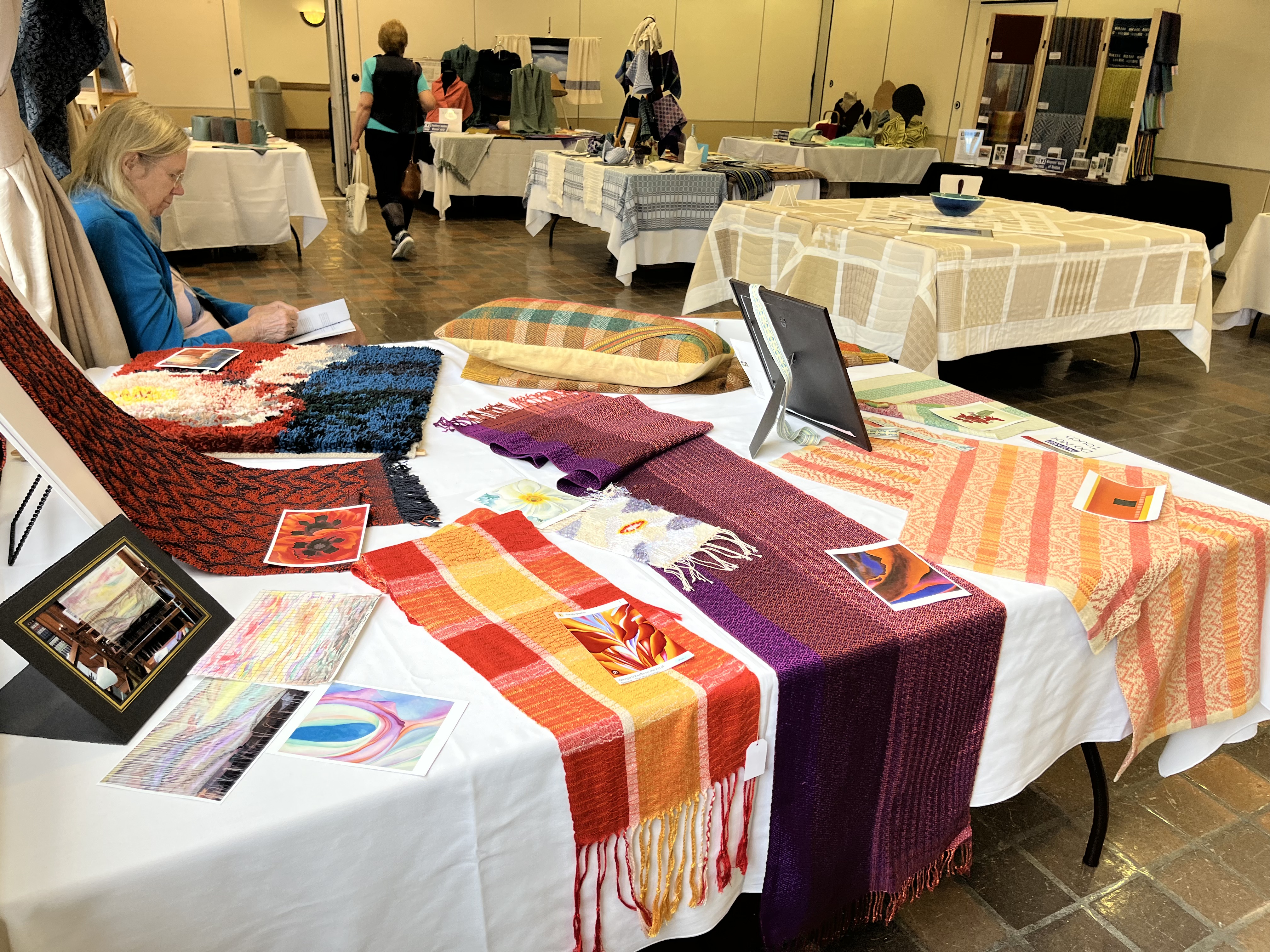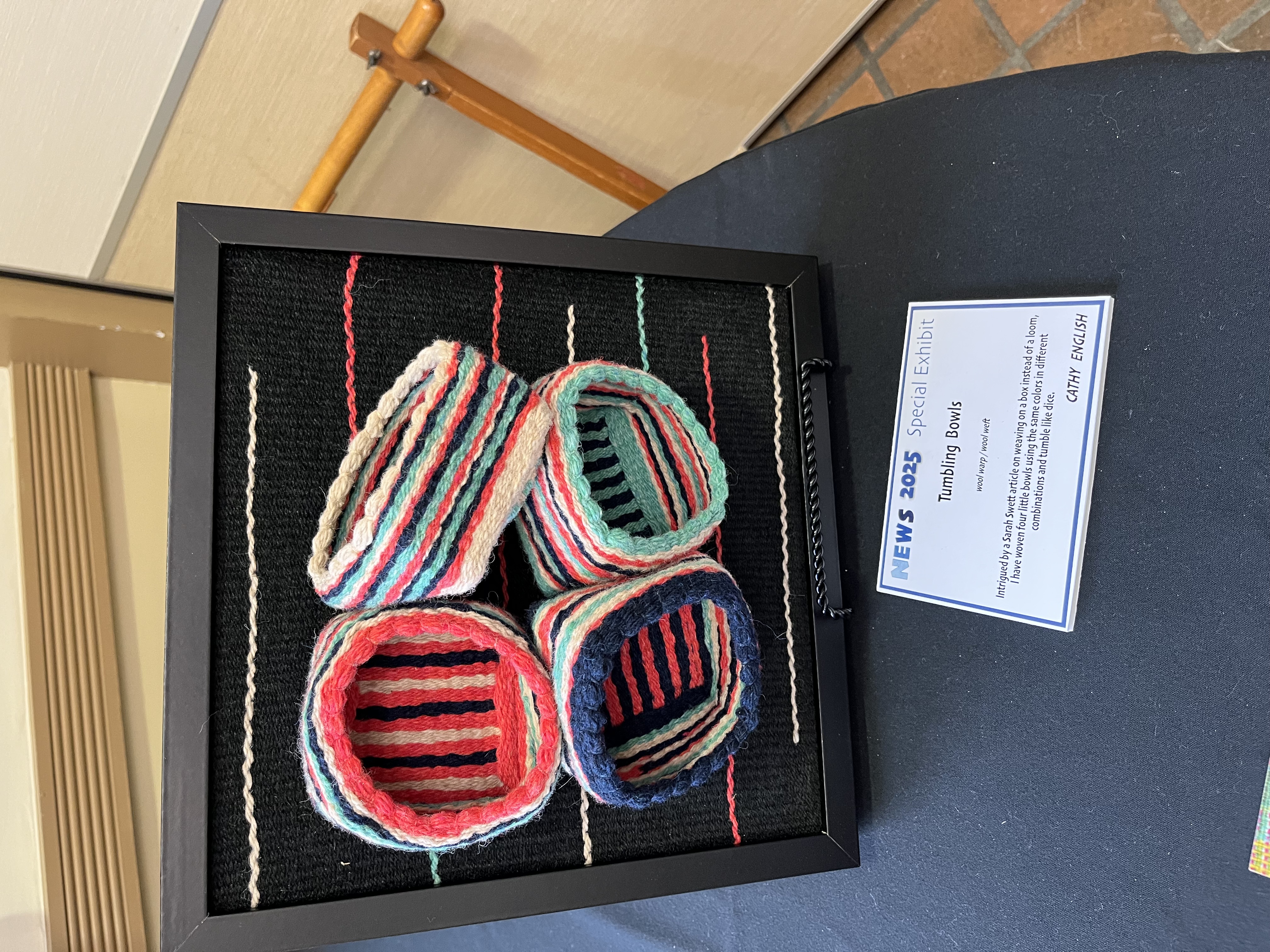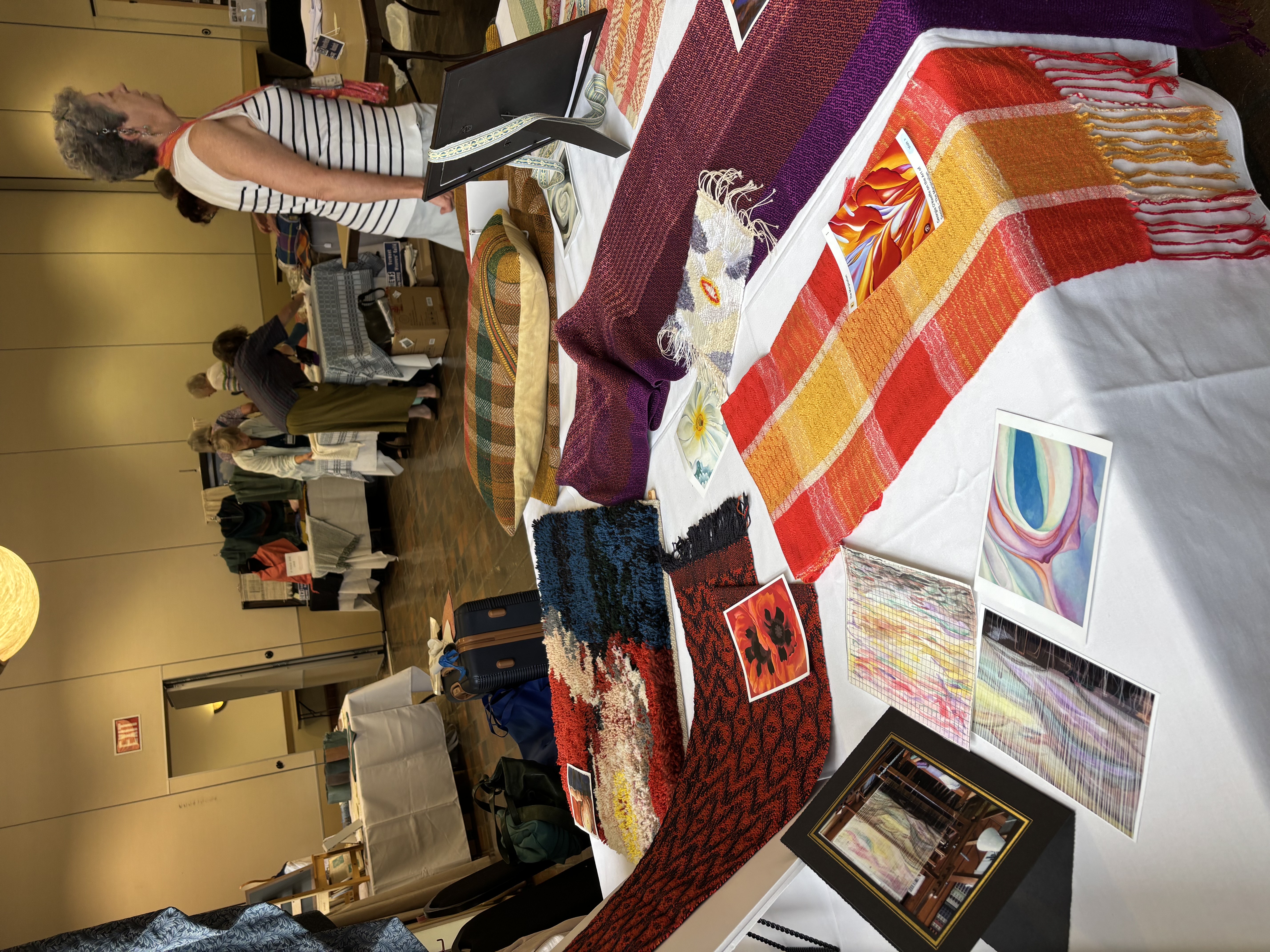 Here are some photos of our members, their entries and our Guild table from the New England Weavers Seminar held July 2025 at Westfield State University!